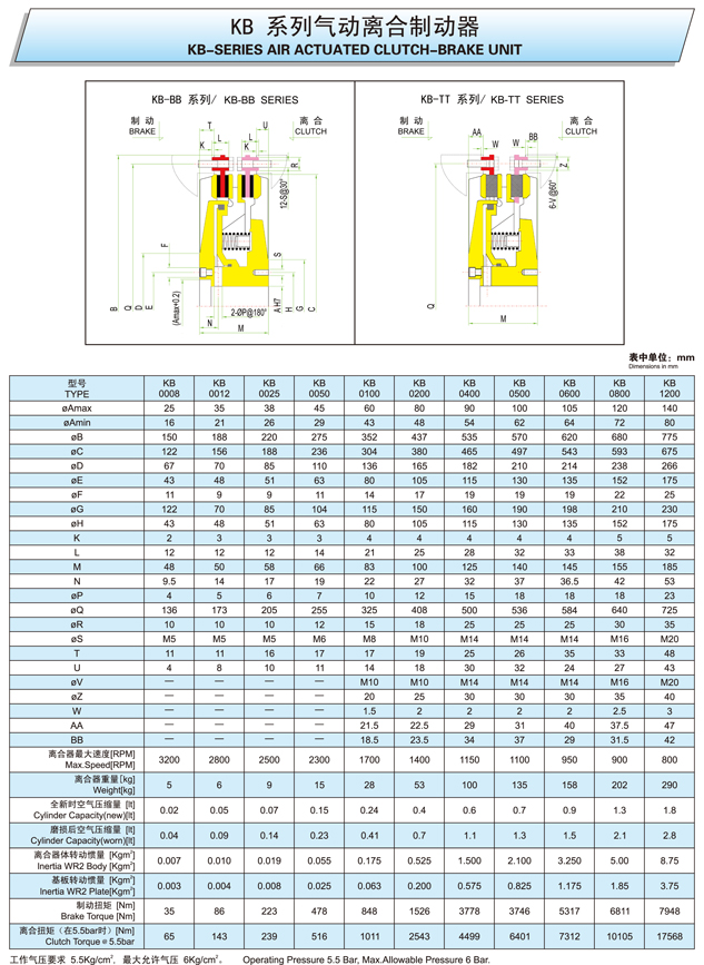 薄型氣動離合器OMPI KB0200 KB0400產品反應快,適用于聯接及制動。不拆卸也可交換摩擦片,適用內徑范圍20~220mm ,當空氣壓0~4mpa時轉距范圍為100~400000N M
