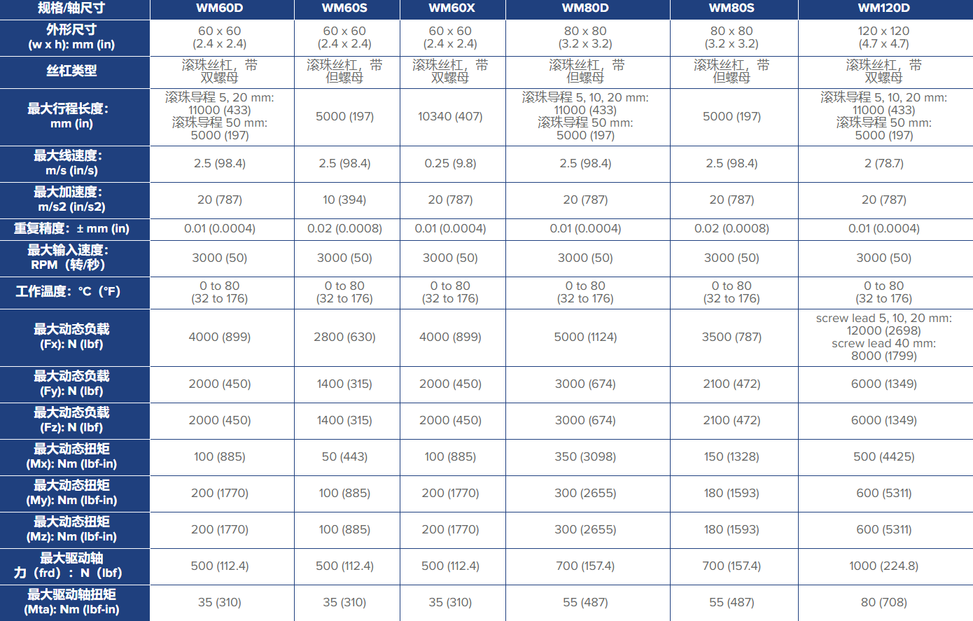 WM系列為需要剛度、剛性和精度的應用提供絲杠驅(qū)動滾珠導向的運動。MLSM采用寬軸承結(jié)構,具有高力矩負載。WV單元類似于WM單元,但需搭配外部軸承導軌使用。WMZ單元是一種負載能力更高的WM軸承系統(tǒng),但采用皮帶驅(qū)動,速度更高。